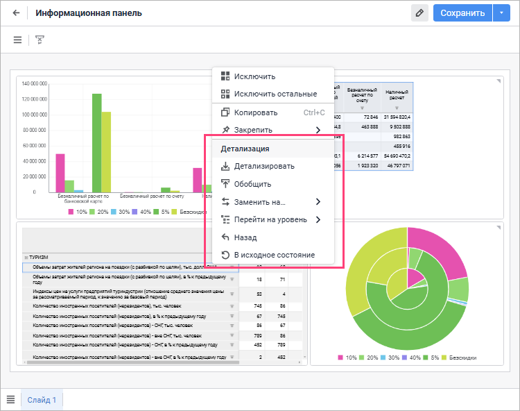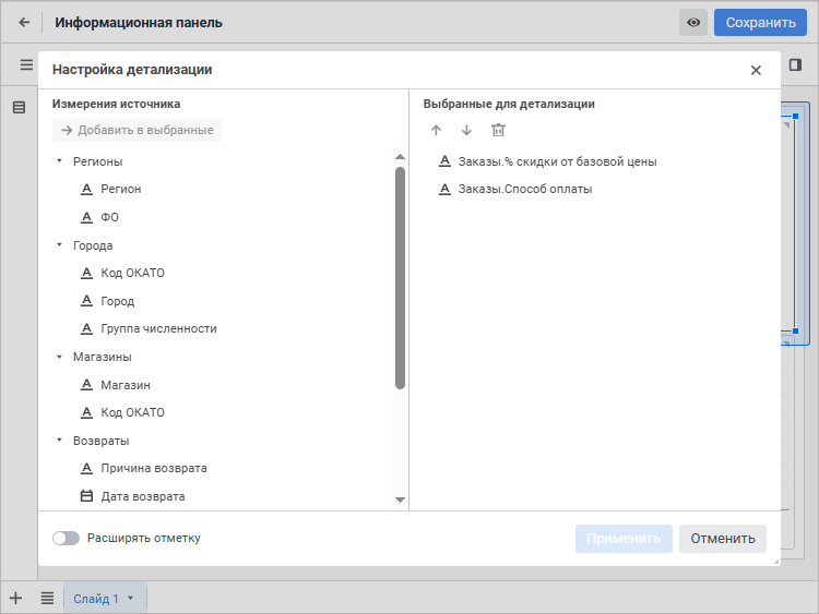 Изменение механизма детализации и обобщения данных, а также расширение его функциональности в регламентных отчётах и информационных панелях в веб-приложении